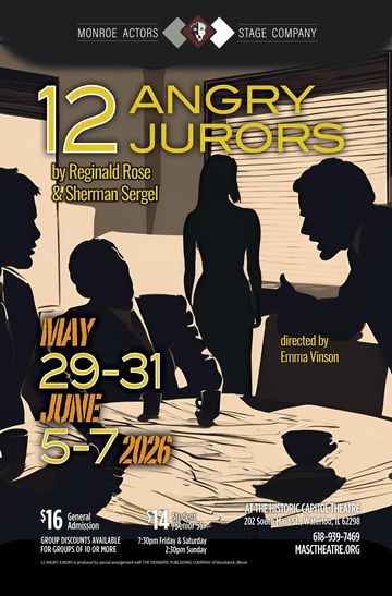 Monroe Actors Stage Company, May 29-31, June 5-7, 2026: Fridays & Saturdays at 7:30 p.m., Sundays at 2:30 p.m. Monroe Actors Stage Company, 202 South Main Street, Waterloo, IL 62298