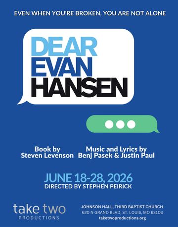 Take Two Productions, June 18-20 & 26-27 at 7:30; June 28 at 2:00, Johnson Hall @ Third Baptist Church, 520 N Grand, St. Louis